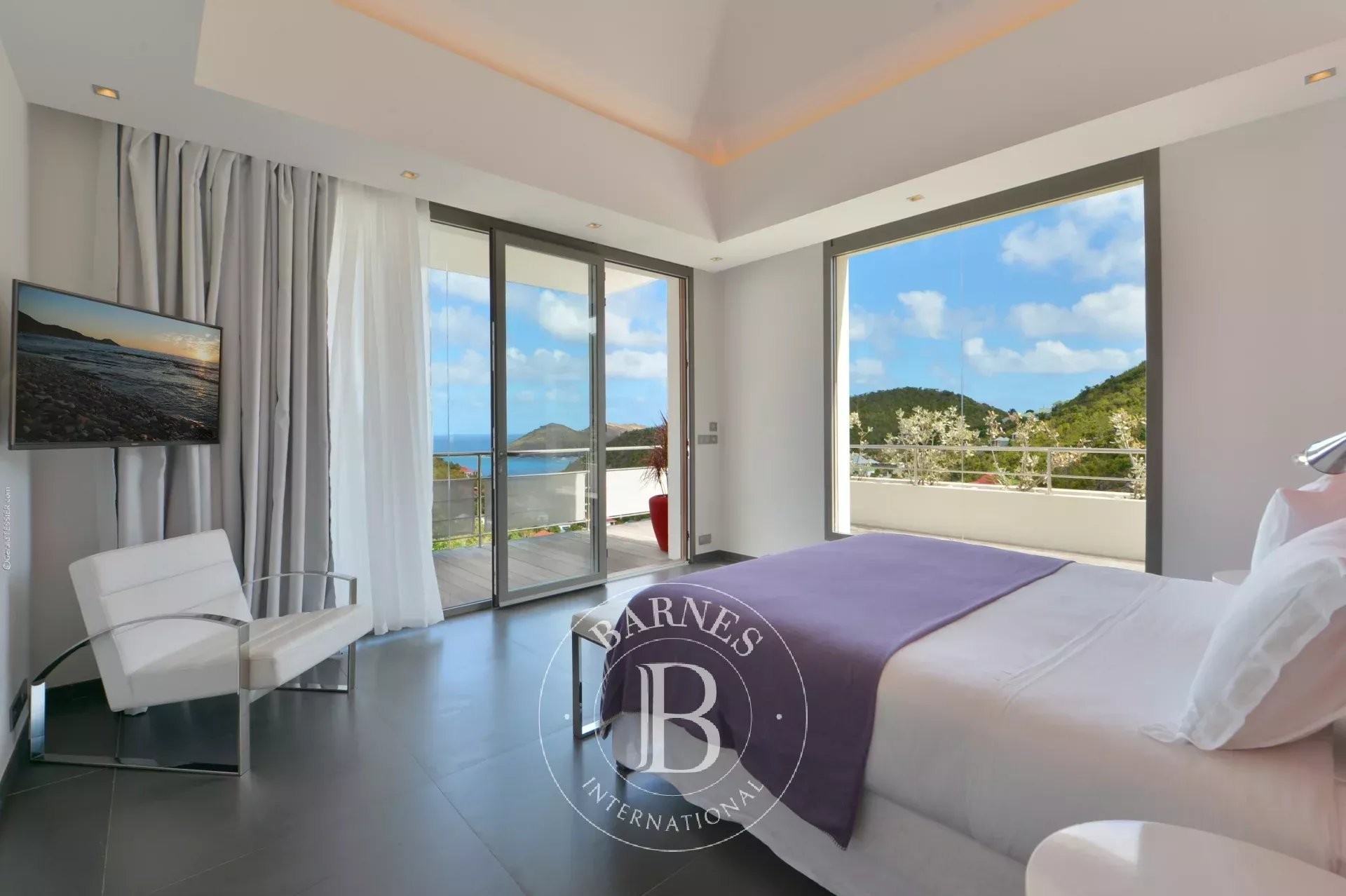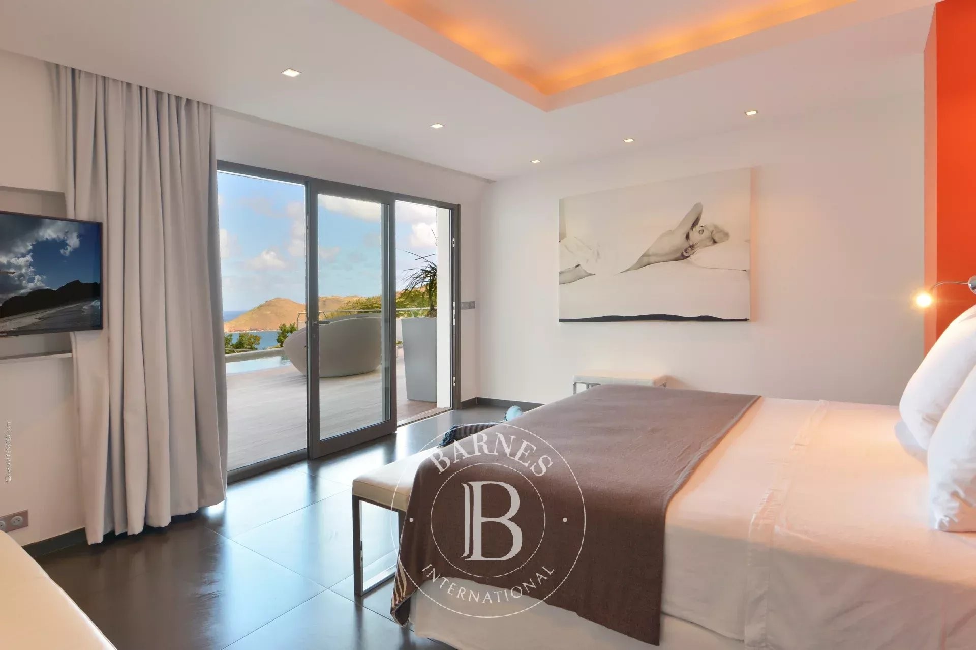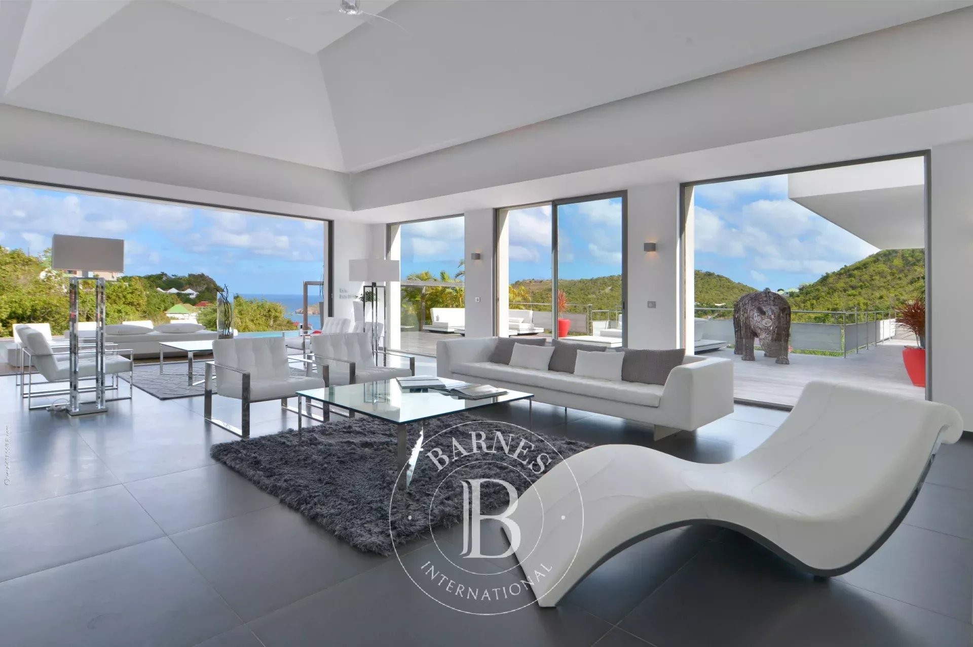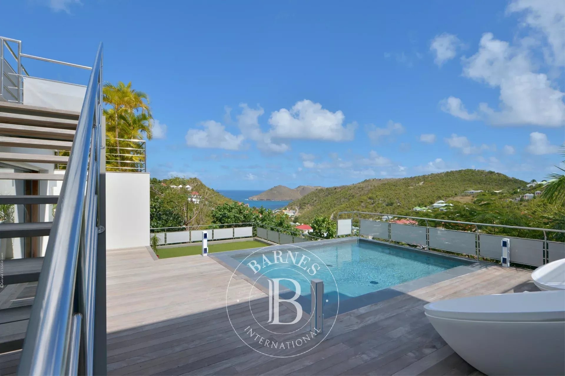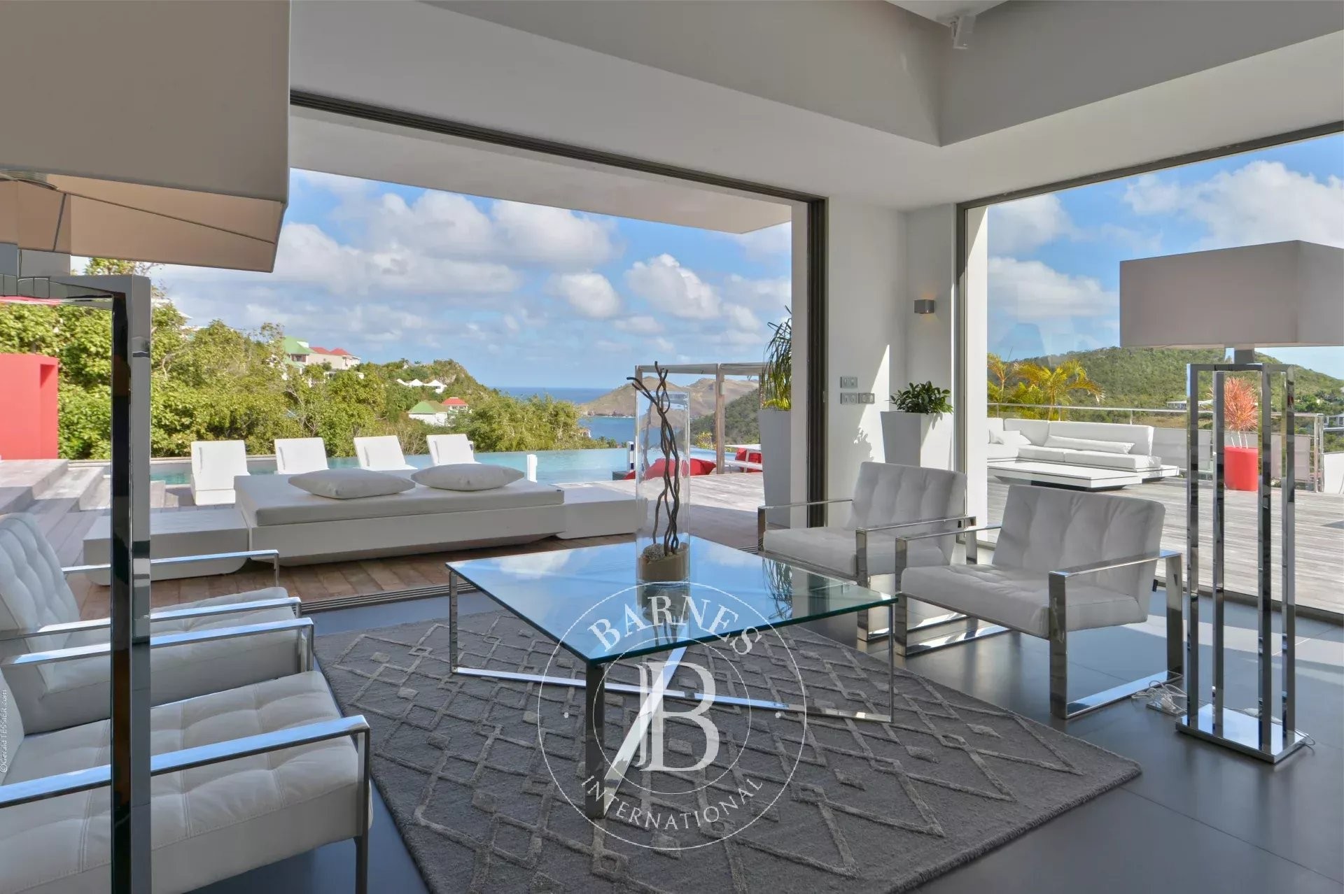 Located in Merlette, on the heights of Flamands, this villa enjoys a prime position offering spectacular views over Flamands Bay and the ocean.
