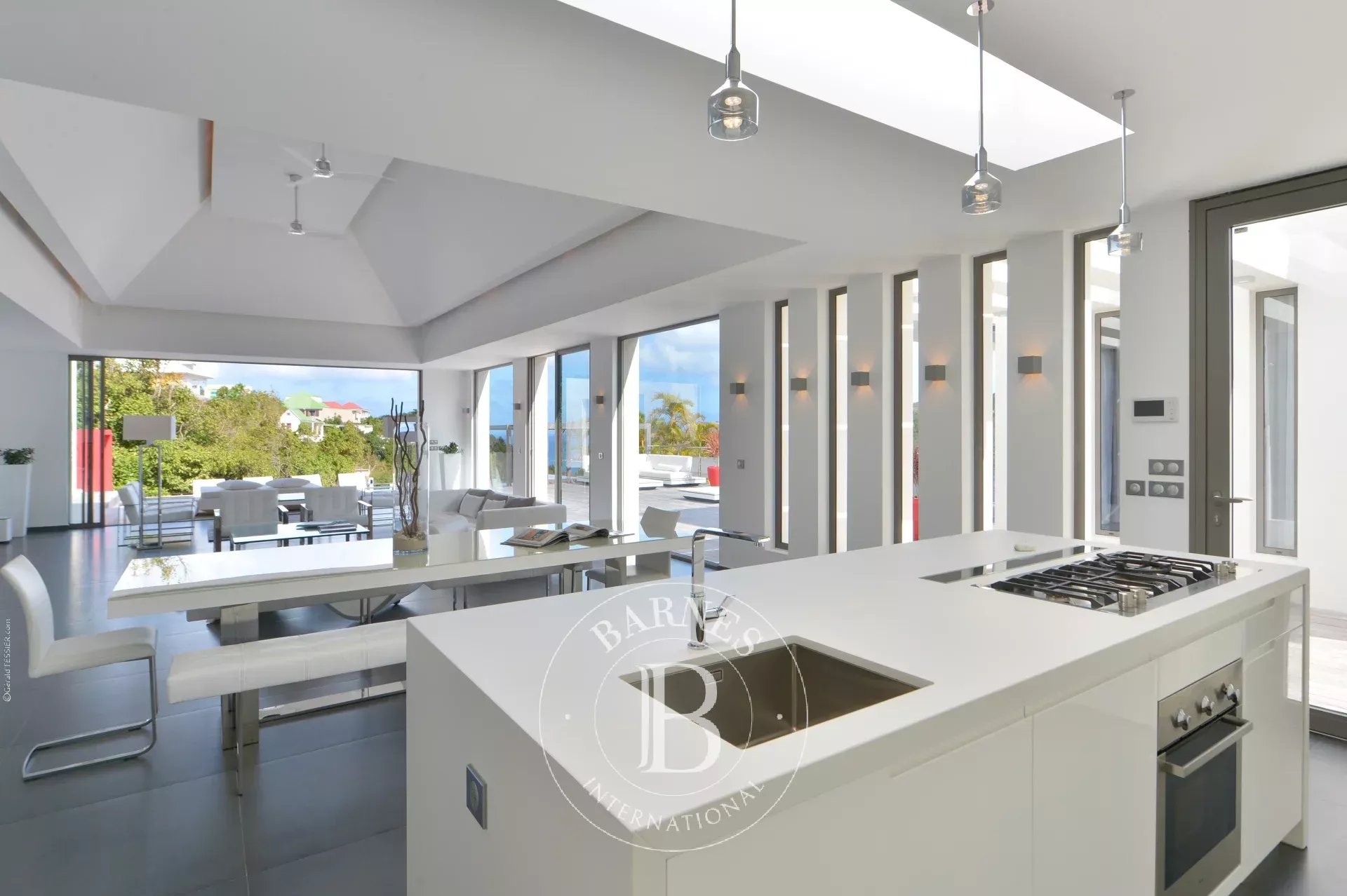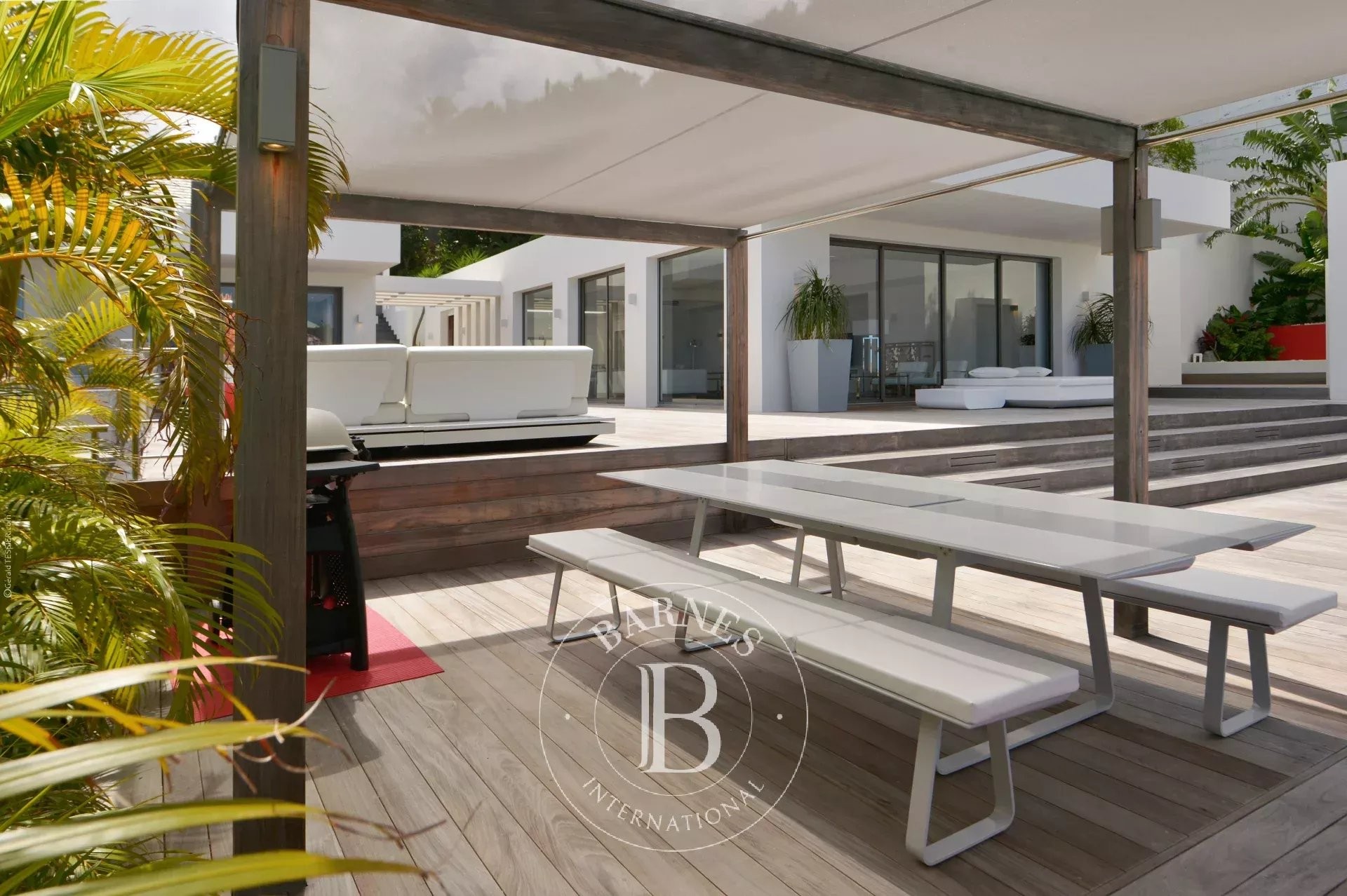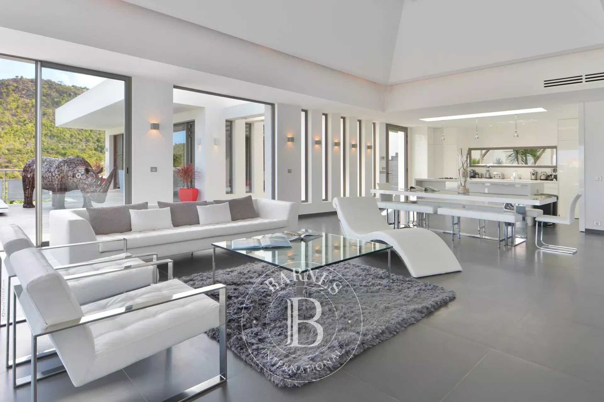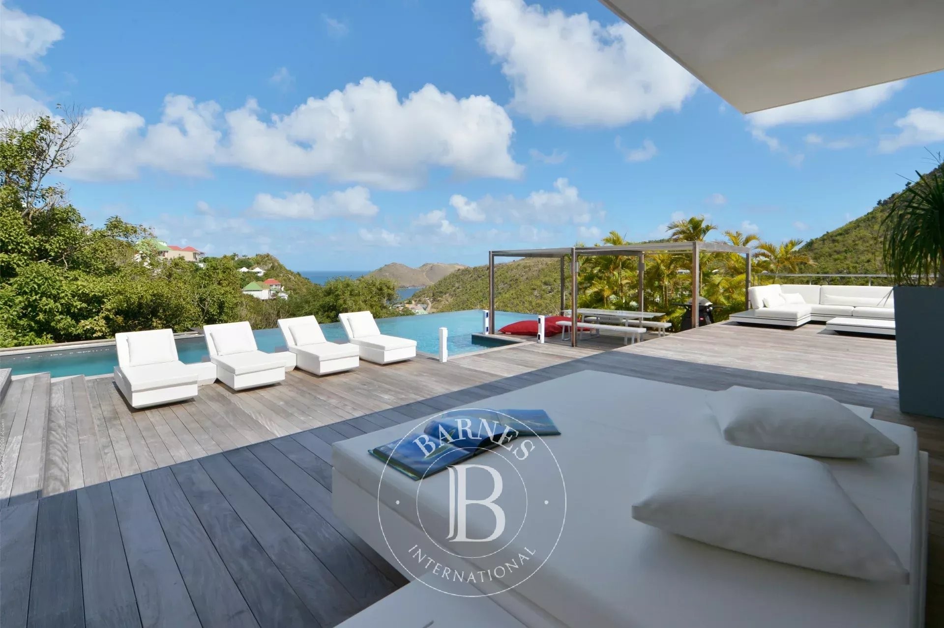 Located in Merlette, on the heights of Flamands, this villa enjoys a prime position offering spectacular views over Flamands Bay and the ocean.
