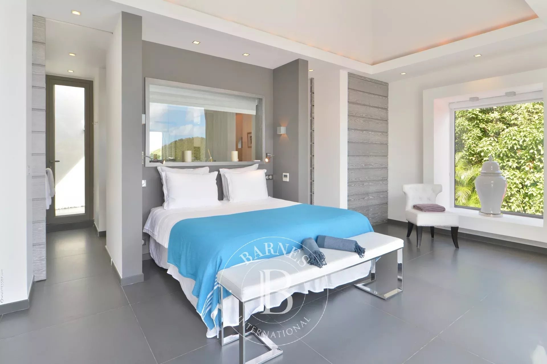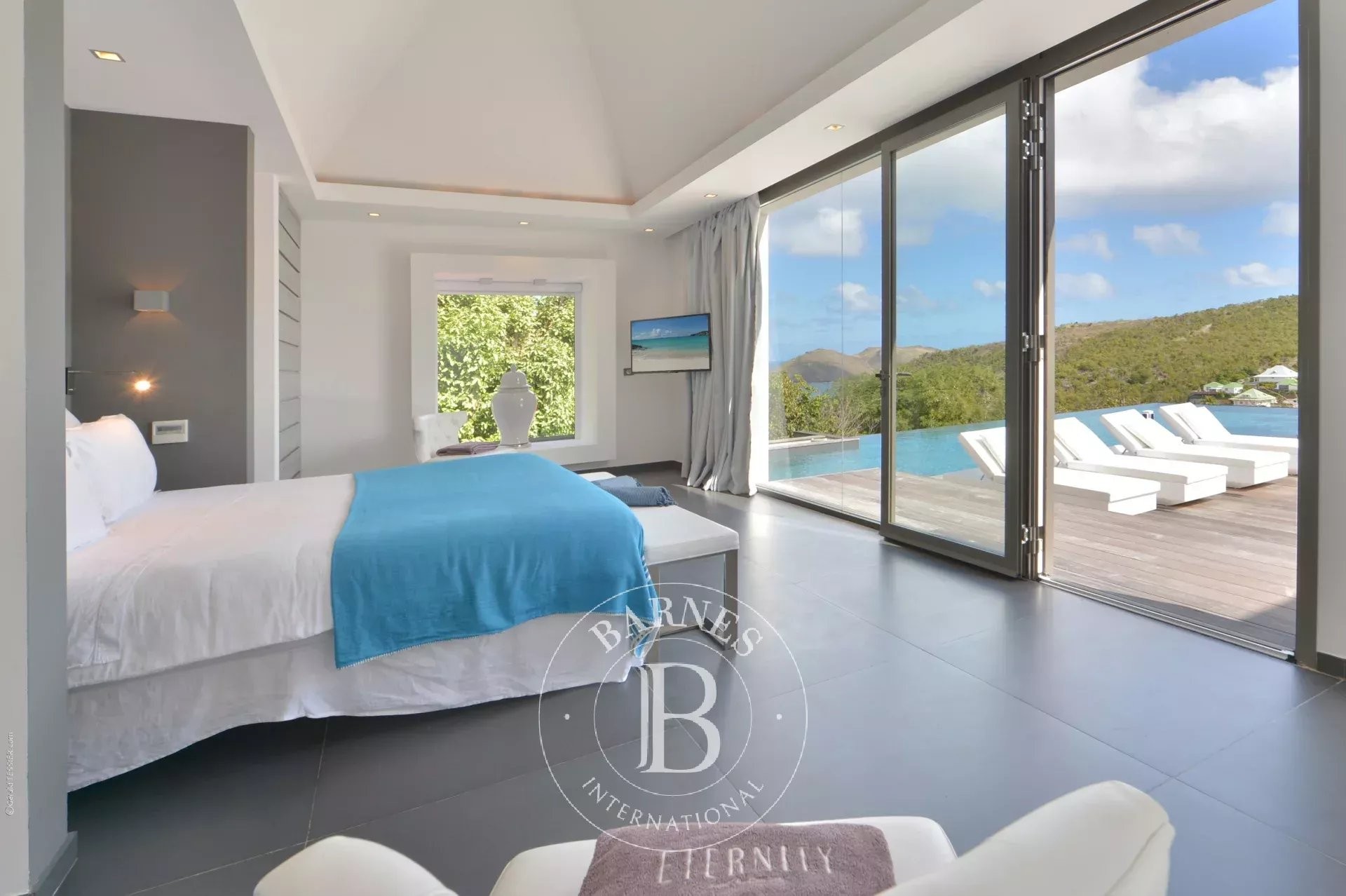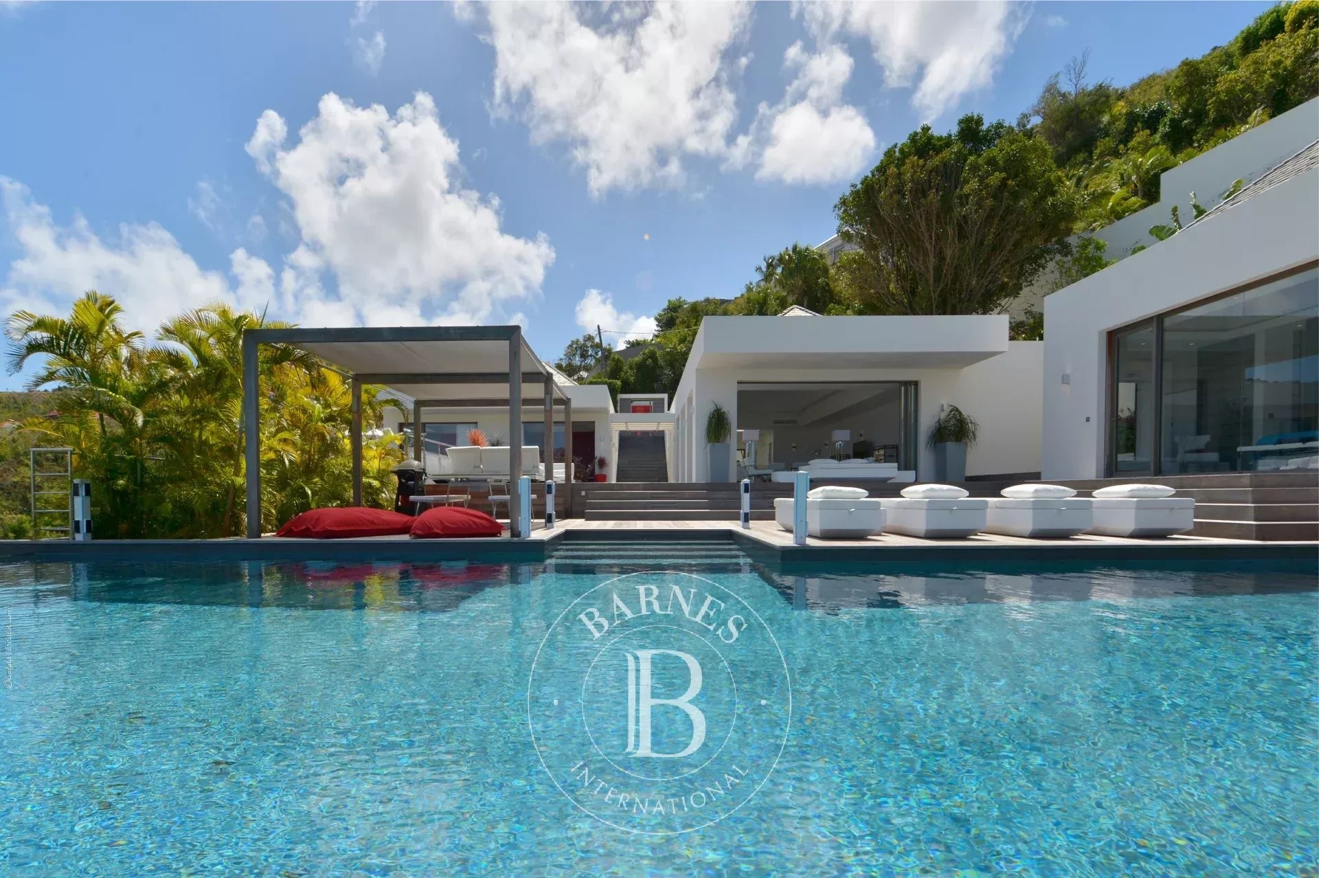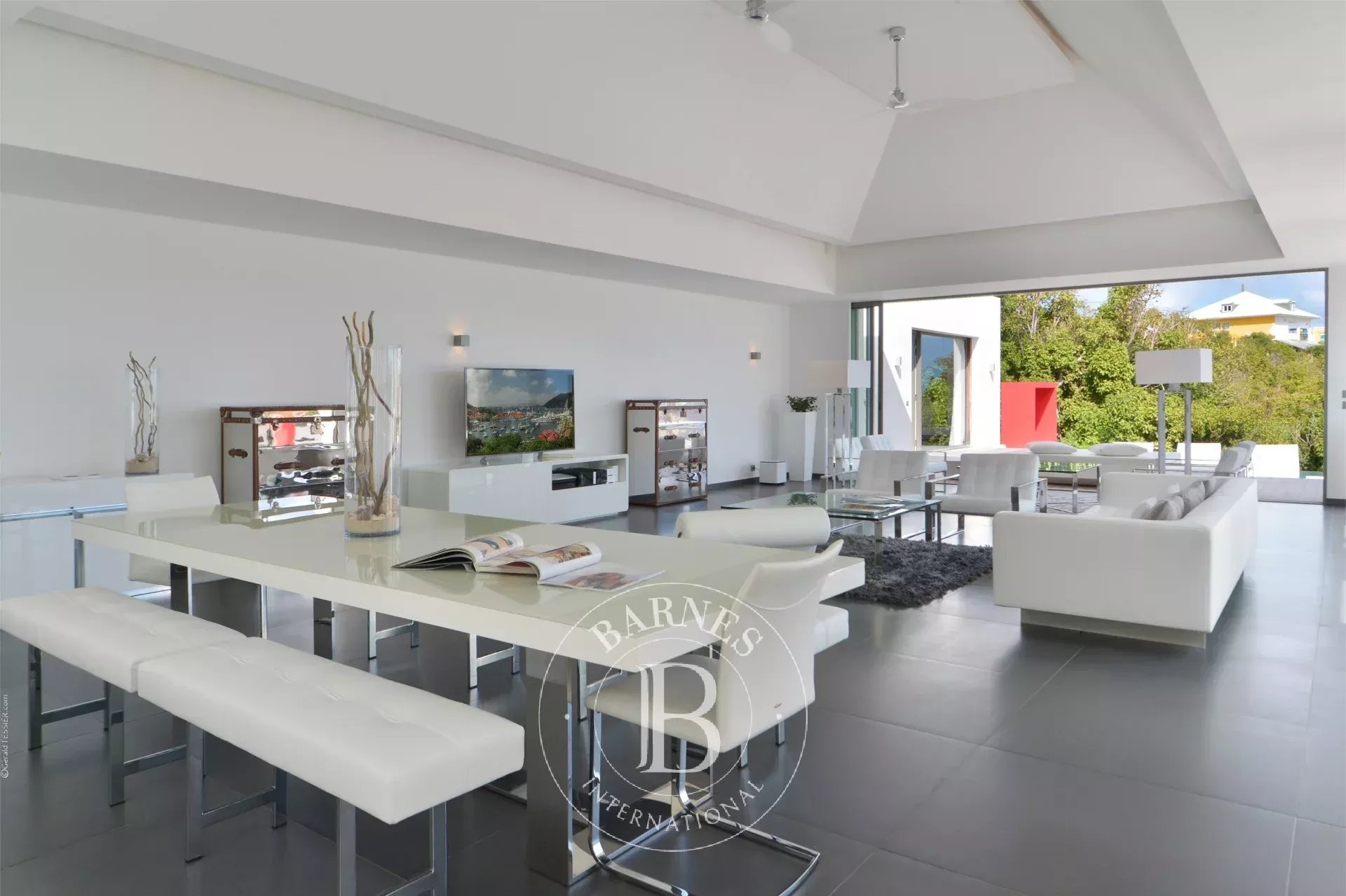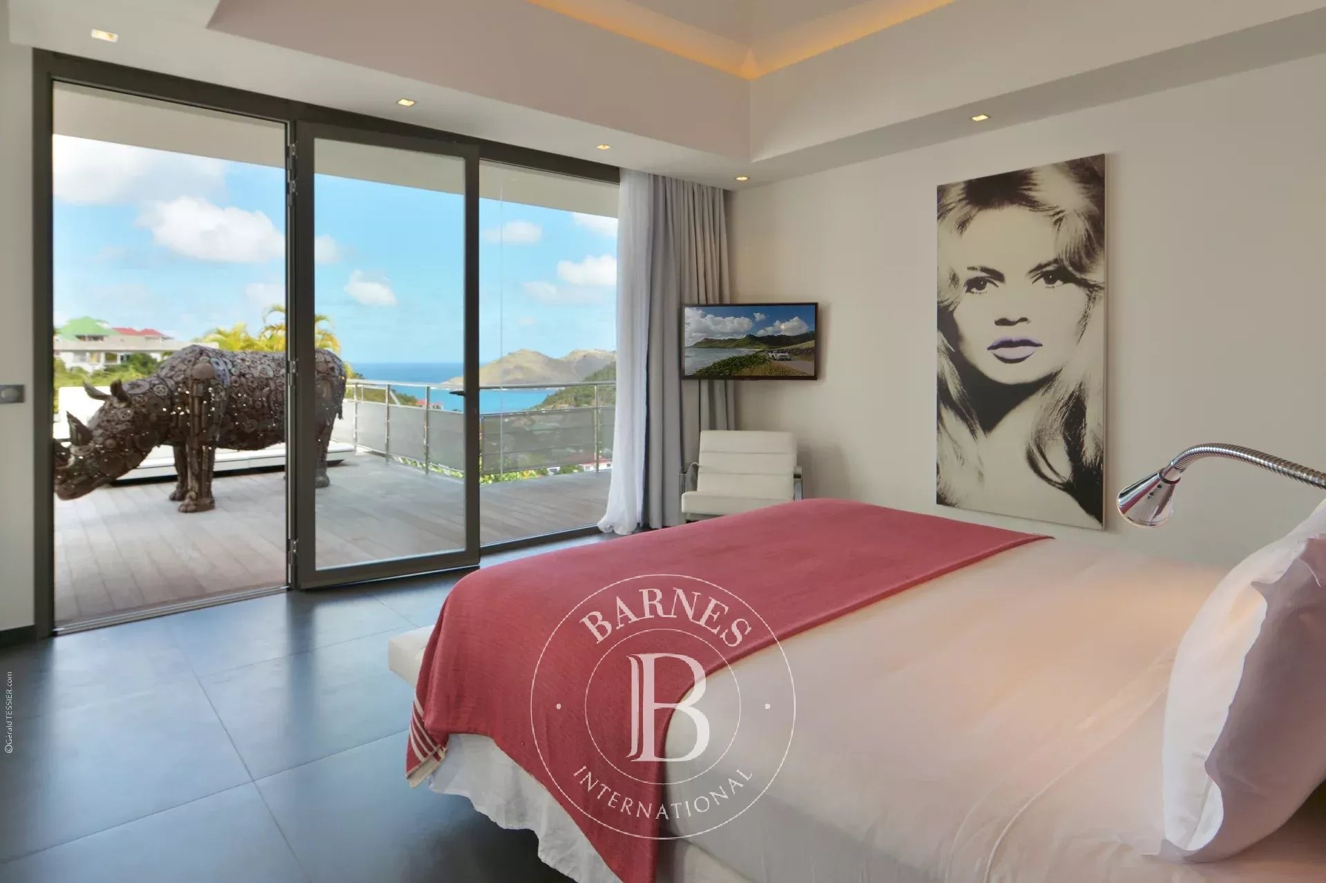 Located in Merlette, on the heights of Flamands, this villa enjoys a prime position offering spectacular views over Flamands Bay and the ocean.