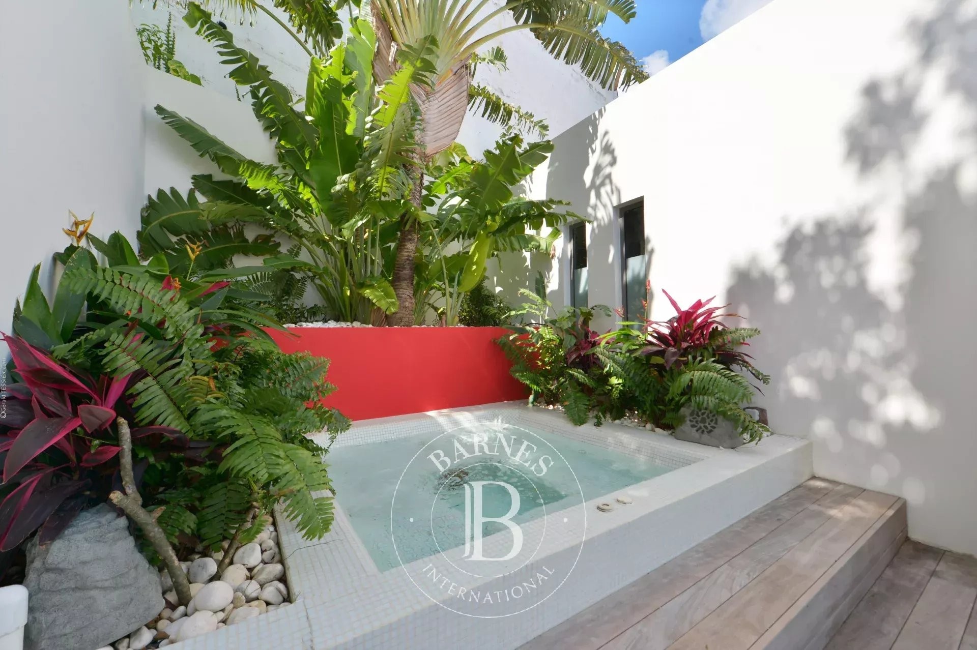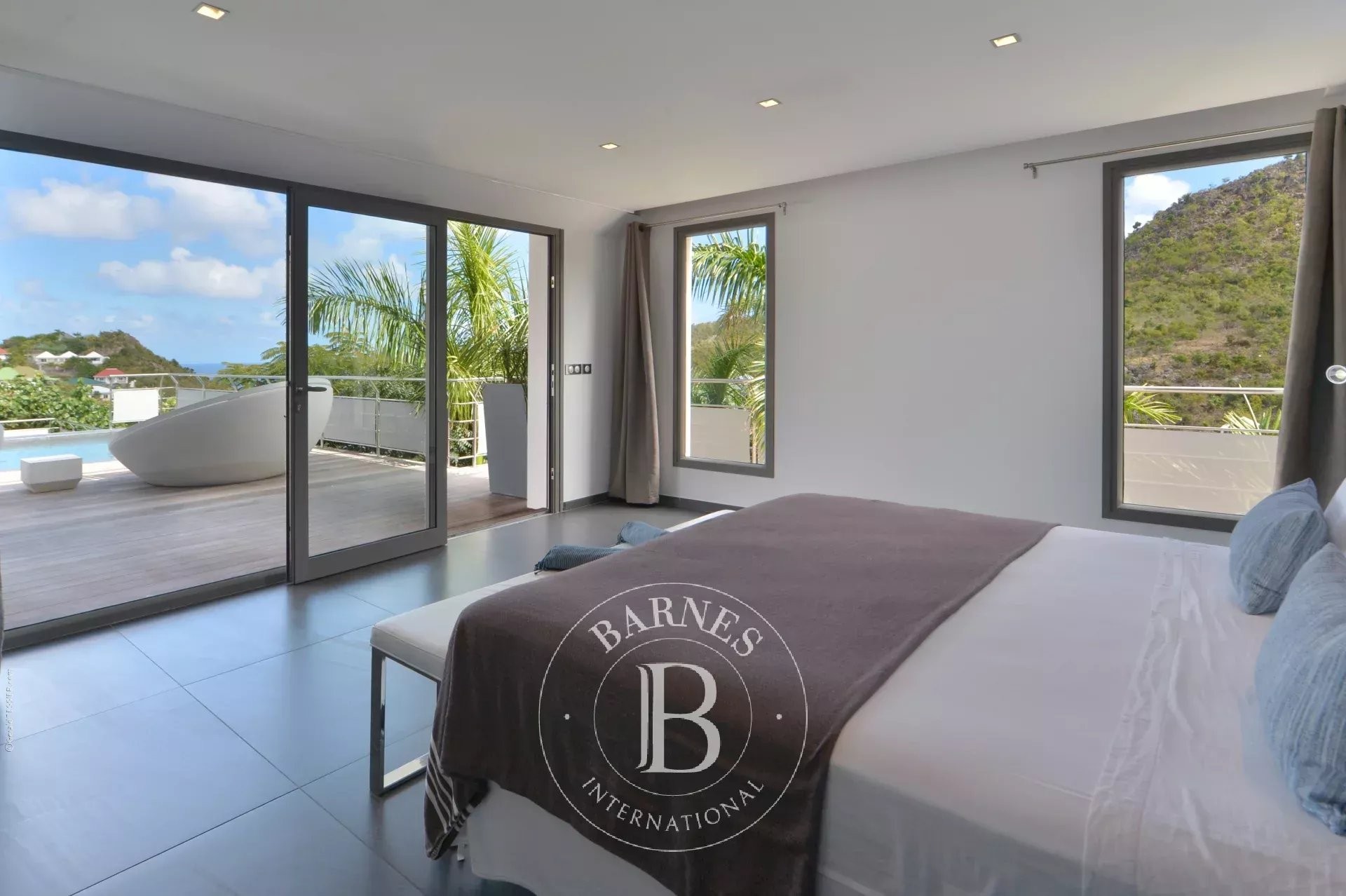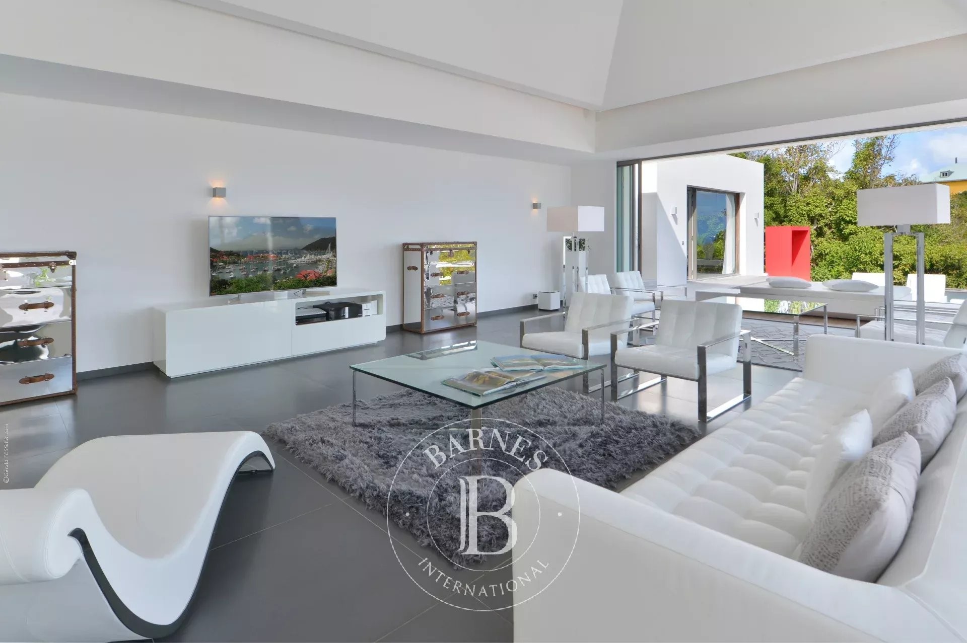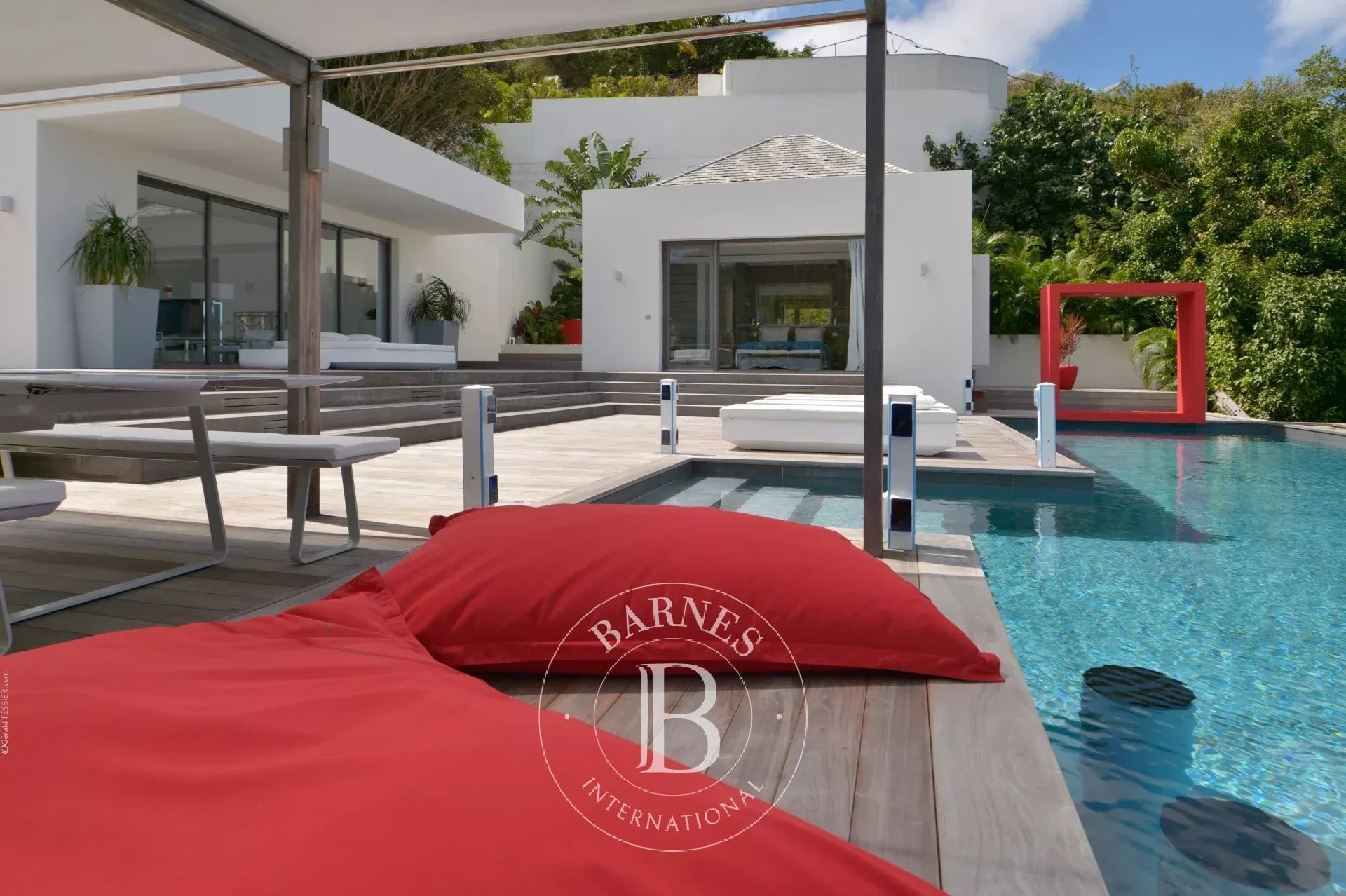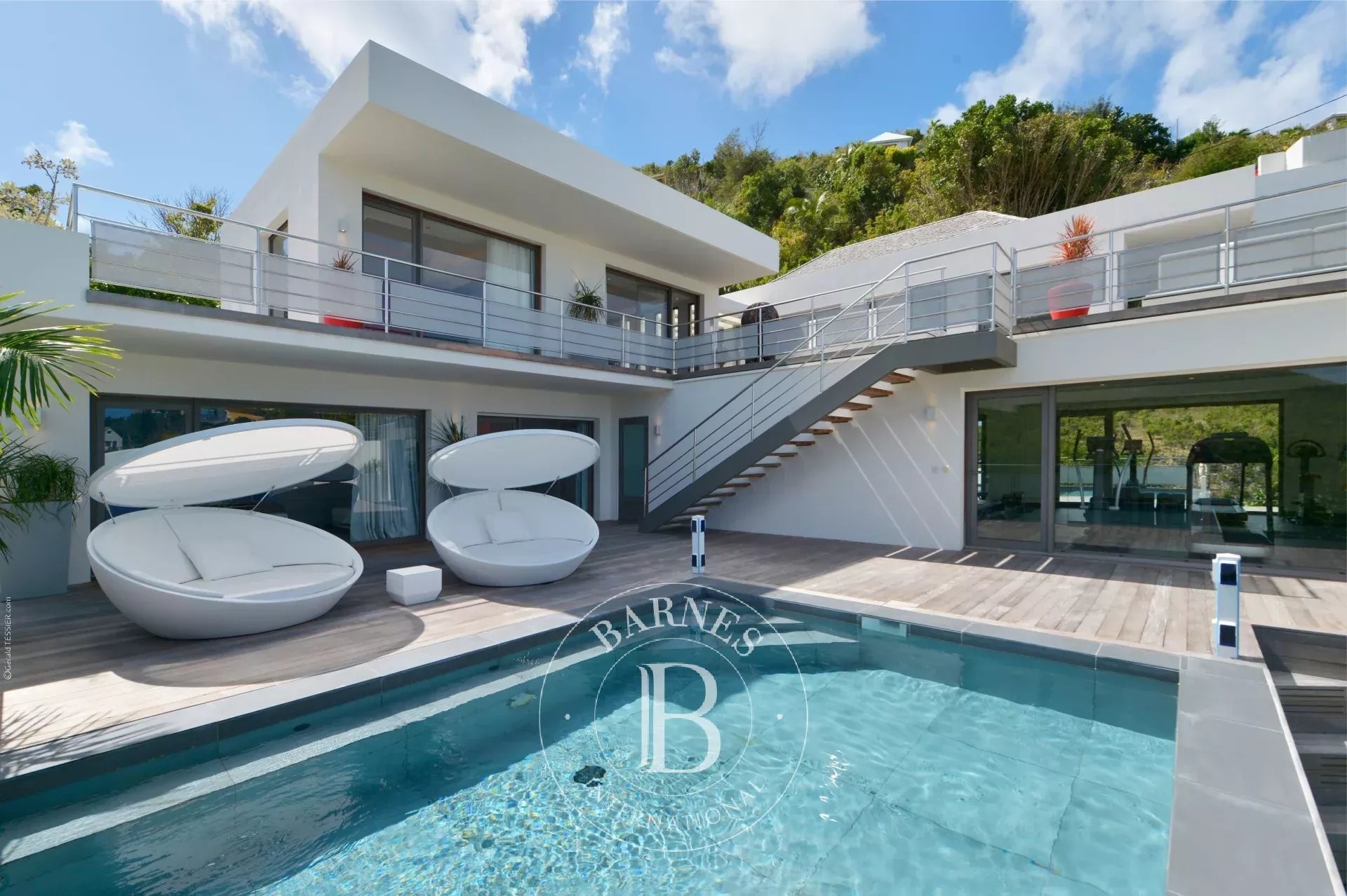 Located in Merlette, on the heights of Flamands, this villa enjoys a prime position offering spectacular views over Flamands Bay and the ocean.