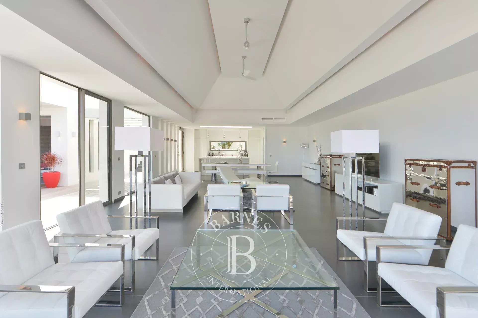 features a spacious and light-filled living area with an open-plan