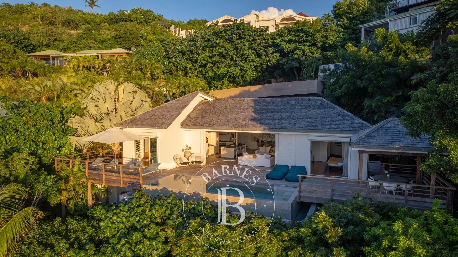 Perched on the heights of Pointe Milou, this property offers breathtaking views over the Caribbean Sea and the surrounding tropical vegetation.